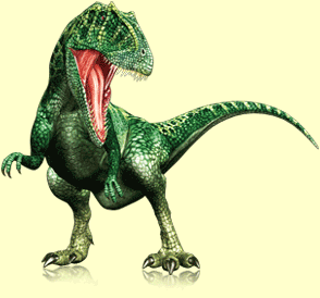 El carcharodontosaurio es un enorme carnívoro de 13 metros cuyo elemento es el fuego con una carta de movimiento llamada Cañón de Fuego. Fue el primer dinosaurio en activarse junto con su carta de movimiento.
